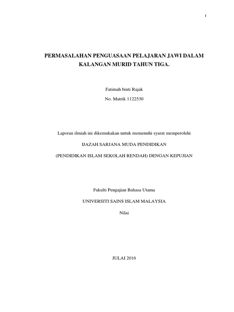 Permasalahan Penguasaan Pelajaran Jawi Dalam Kalangan Murid Tahun Tiga Pdf